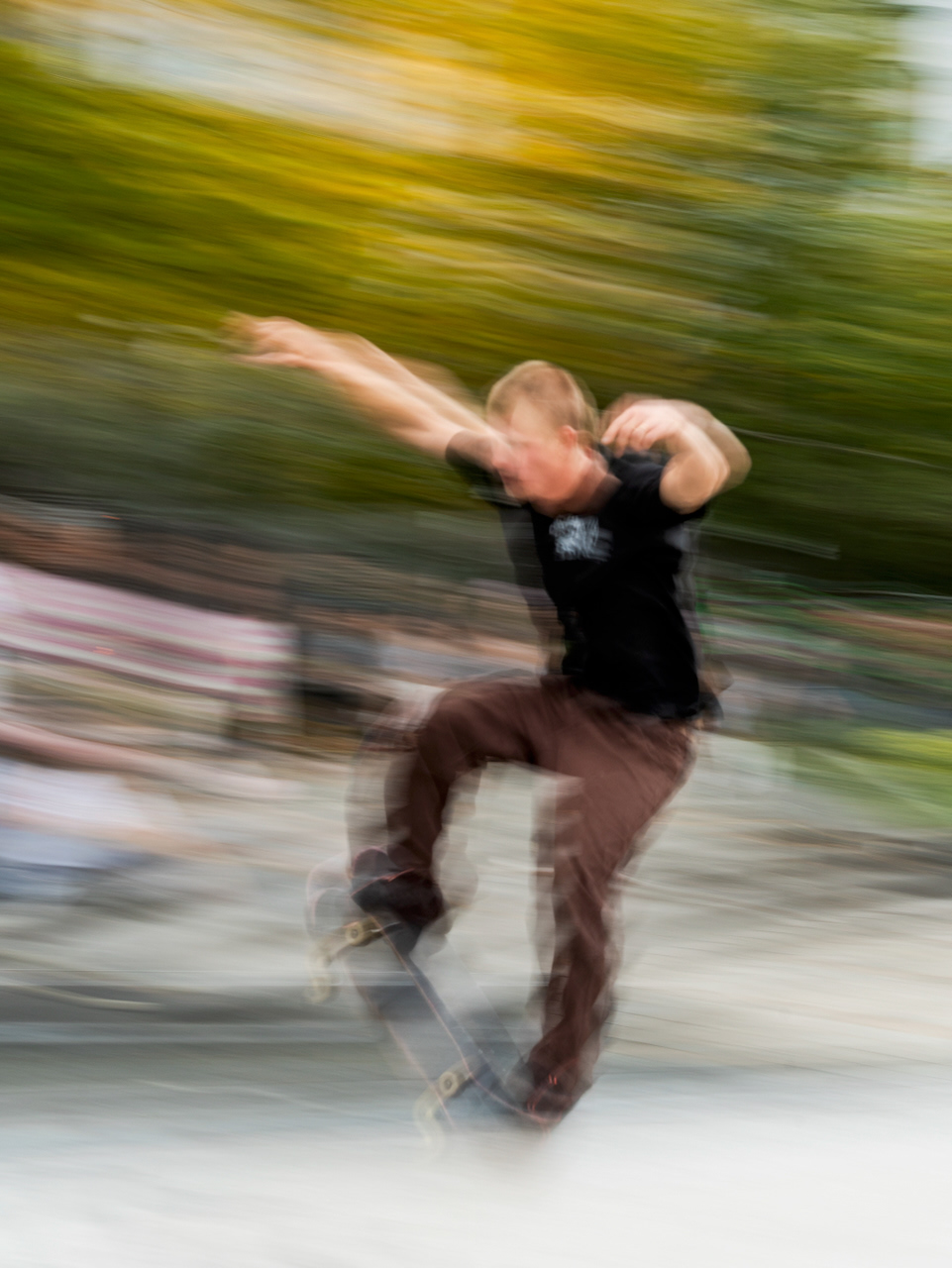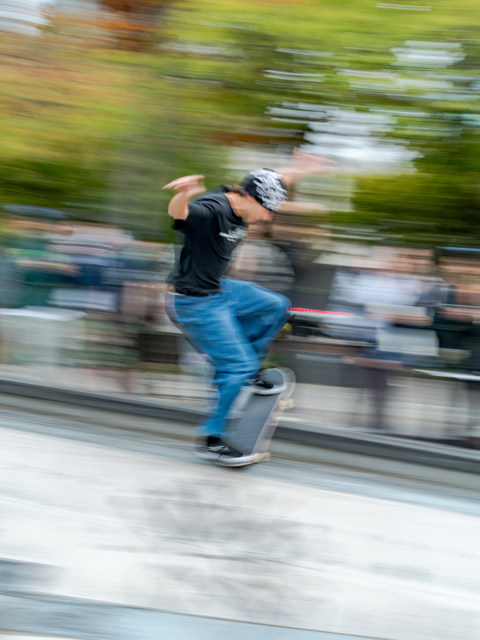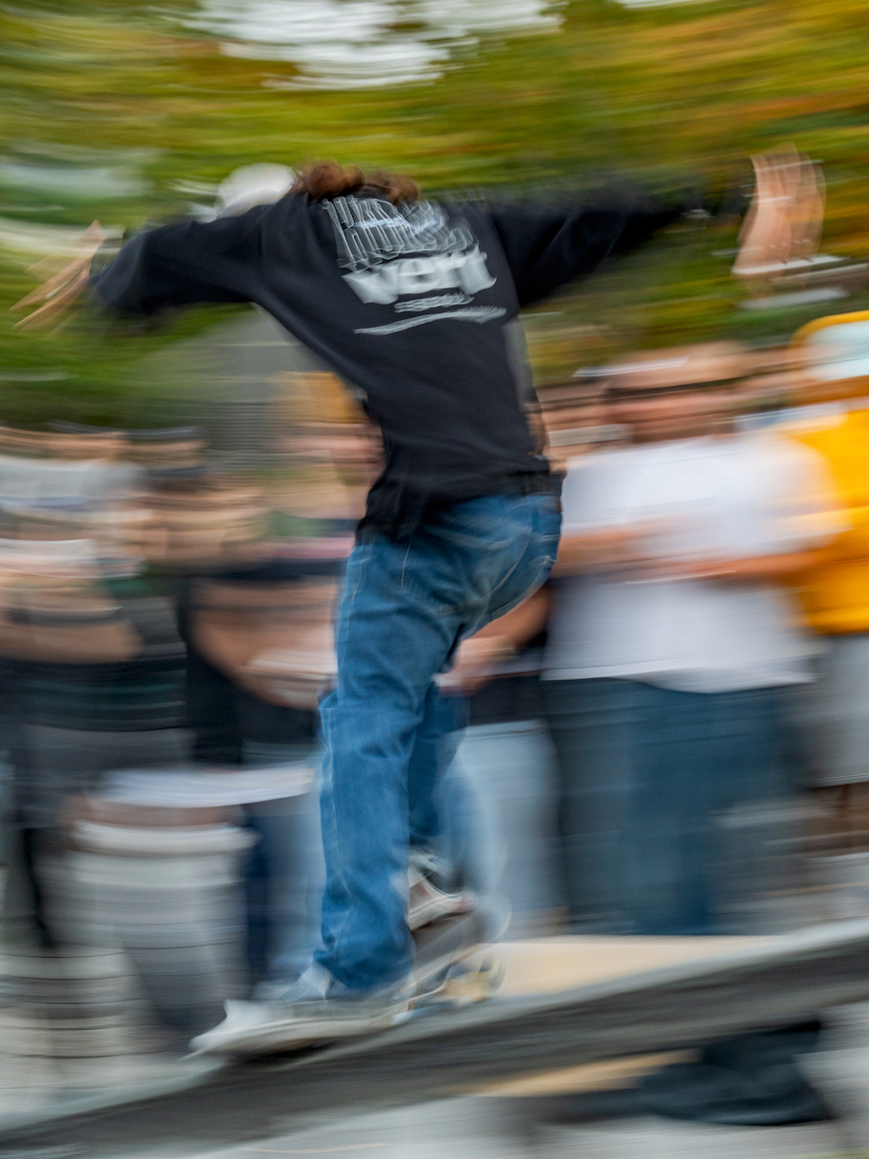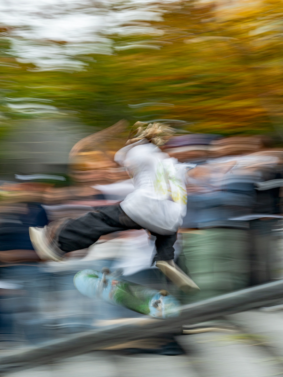 회색빛 도시, 무표정의 직장인들 속에서 각자 트릭을 선보이고 끊임 없이 도전하는 스케이트 보더들의 에너지는 잠시 잊고 살았던 순수한 열정을 떠올리게 한다.